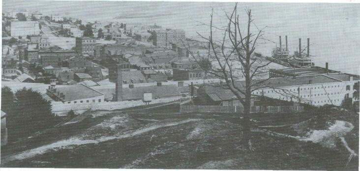 This view of Alton, Illinois in 1862 clearly shows the prison in the foreground as the large